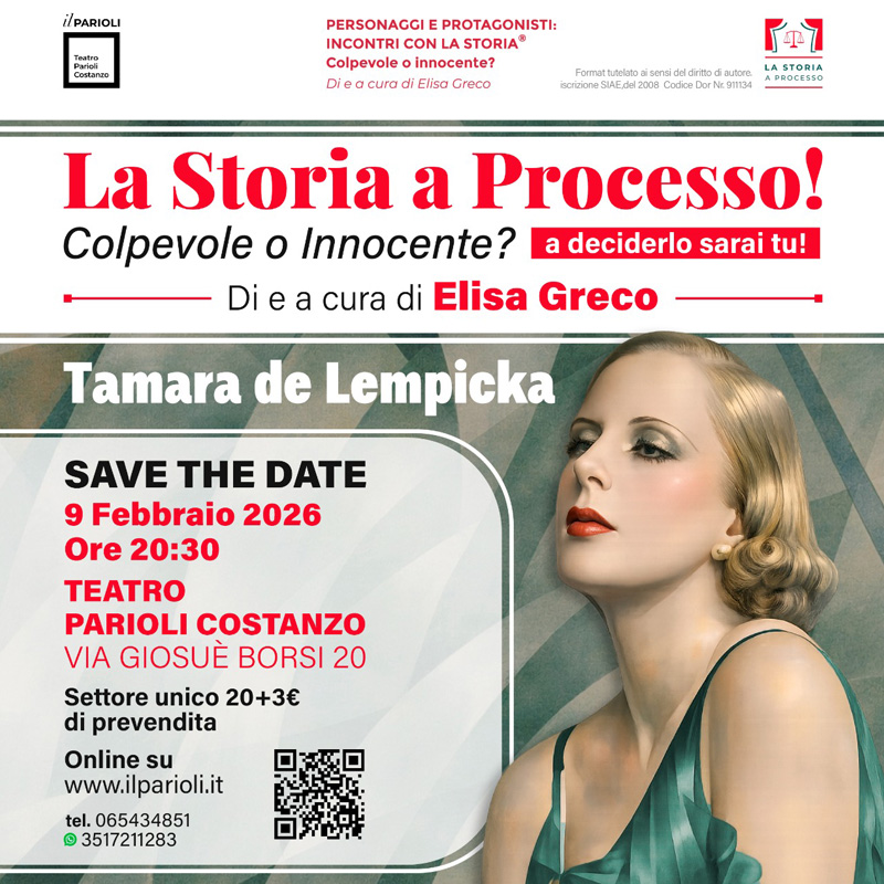 Per la prossima stagione del celebre format, La Storia a Processo! Colpevole o Innocente? a cura di Elisa Greco, tre saranno le Provocazioni in scena, con tre Imputati Eccellenti che, per i propri percorsi di vita intrecciati a vicende storiche, offriranno spunti di discussione.
